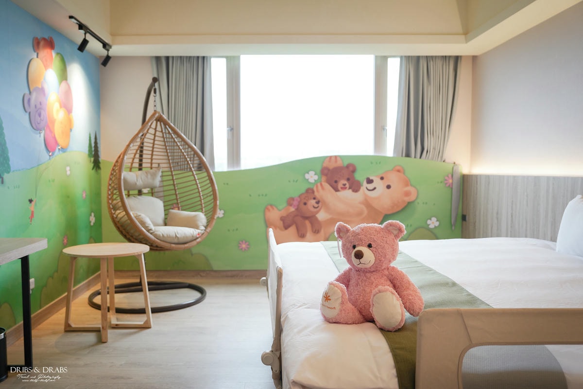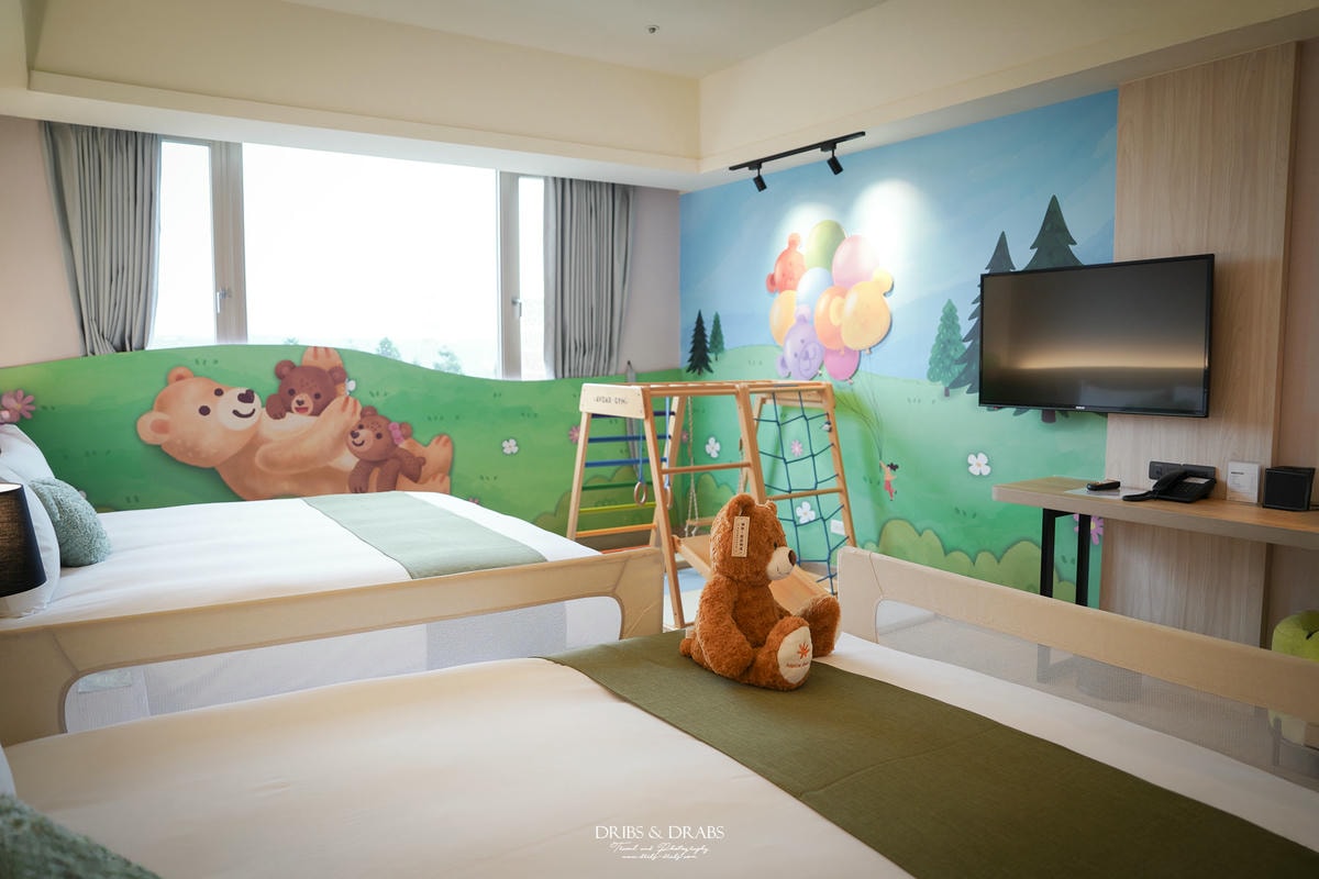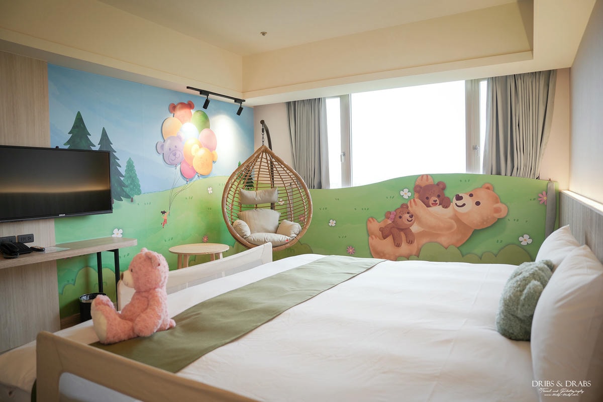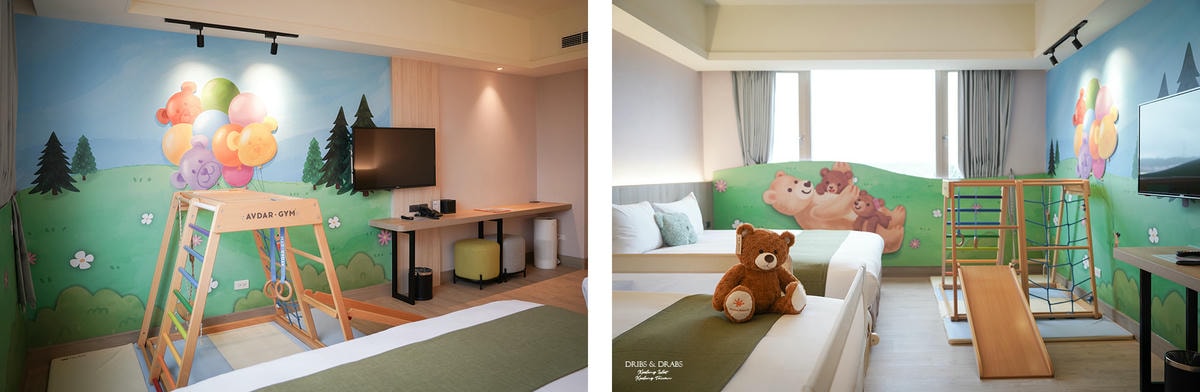 位於桃園龍潭渴望園區內的「渴望會館」,近期推出了超療癒的「小熊主題房型」,入住便贈送一隻柔軟的玫瑰絨毛熊娃娃,完全擄獲孩子的心!房內設有童趣十足的彩繪牆、AVDAR 櫸木攀爬架與兒童繪本,貼心打造出專屬於小朋友的遊戲天地。近期更有「小熊博物館」進駐館內,增添豐富可愛的參觀亮點。會館周邊則有六福村與小人國兩大主題樂園,鄰近的石門水庫更是擁抱自然的好去處,無論是親子假期還是輕旅行,都是理想的下榻選擇。