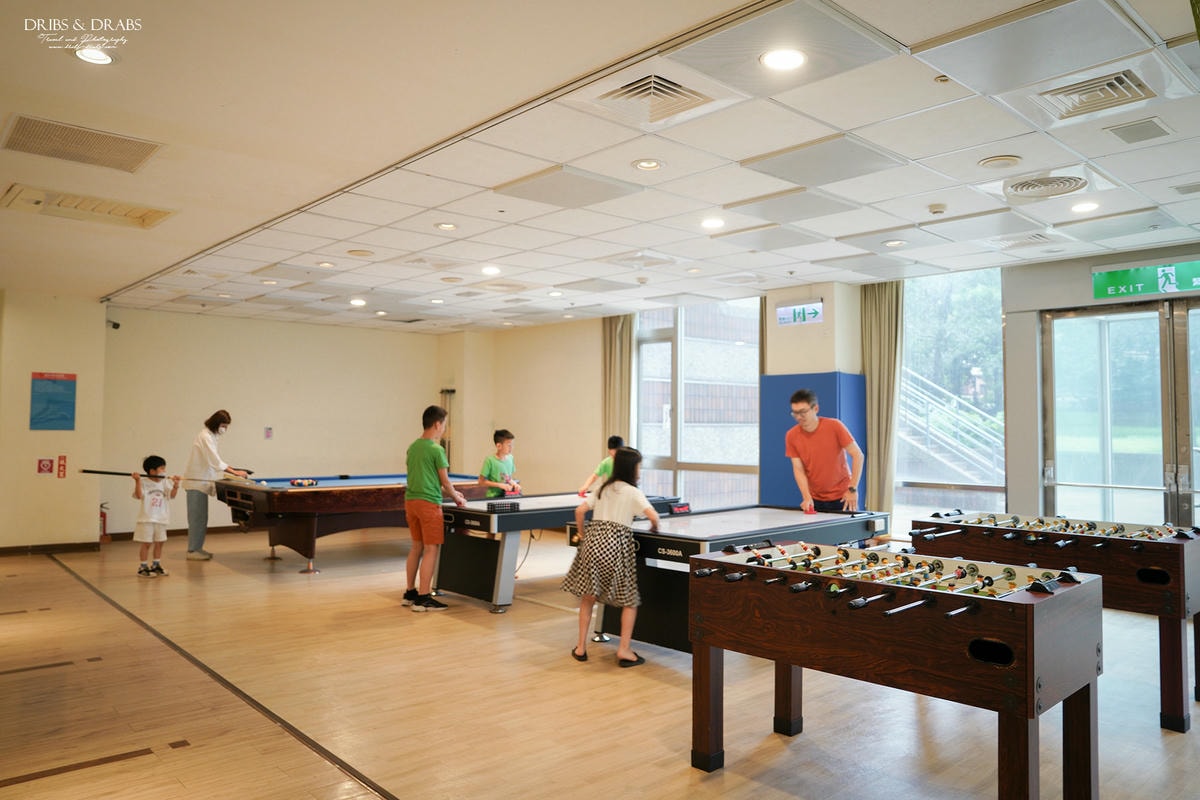 渴望會館的娛樂設施多元豐富,溫水游泳池、水療池,到任天堂 Switch、健身房、球池、桌球、撞球等等,其中最推薦的非腳踏車莫屬!會館門外即是萬坪綠地公園,草皮乾淨整齊、樹木高聳成蔭,景色美得令人心曠神怡。特別喜歡被大自然包圍的舒心感,孩子們可以自由奔跑、大人也能悠閒漫步。