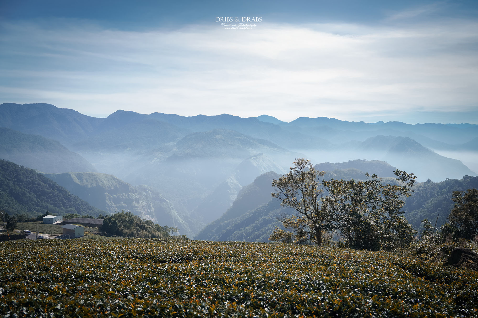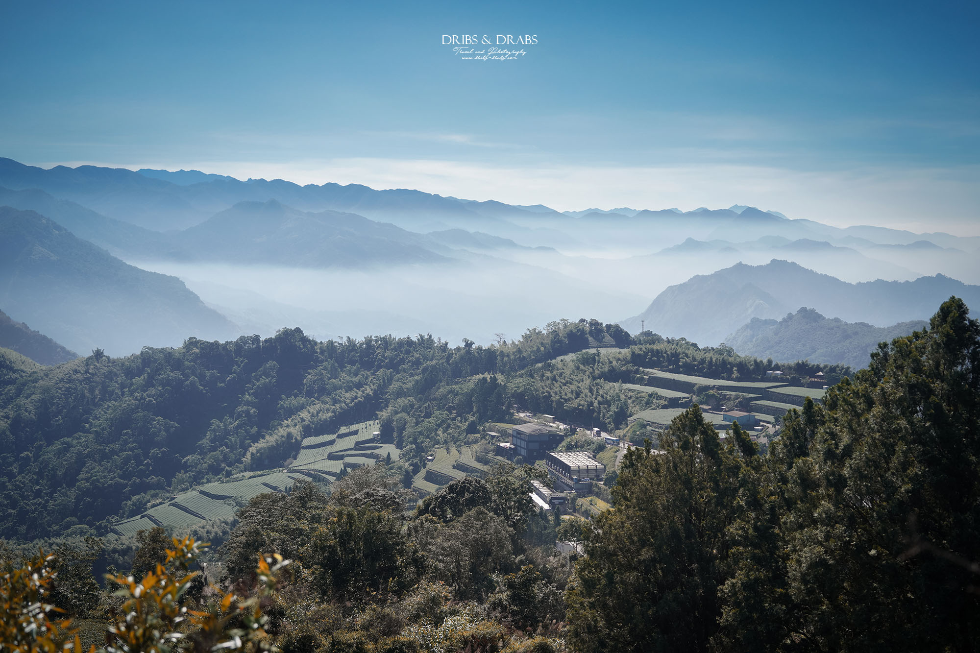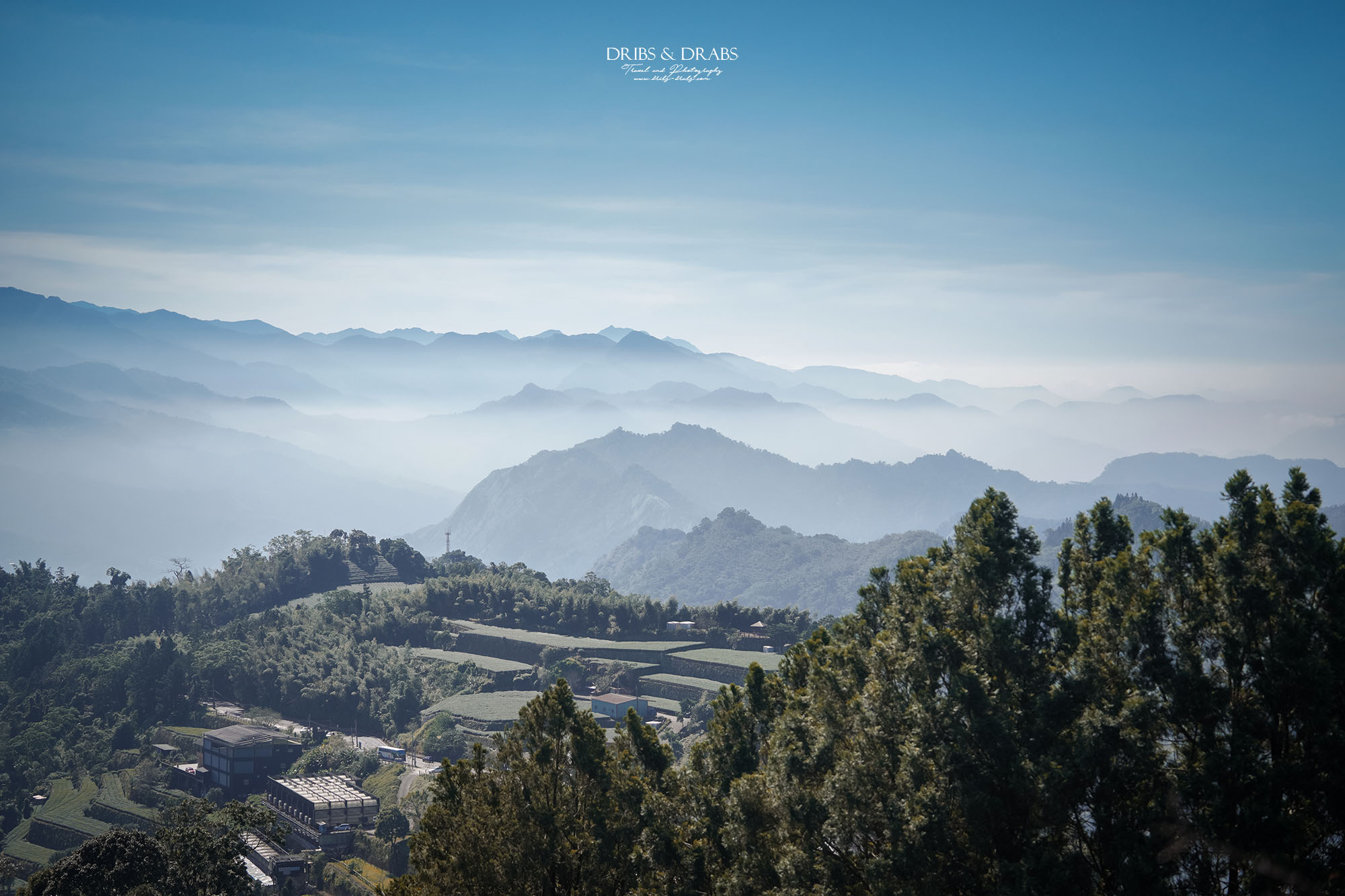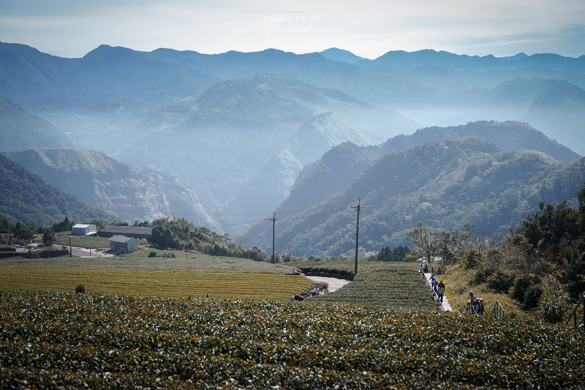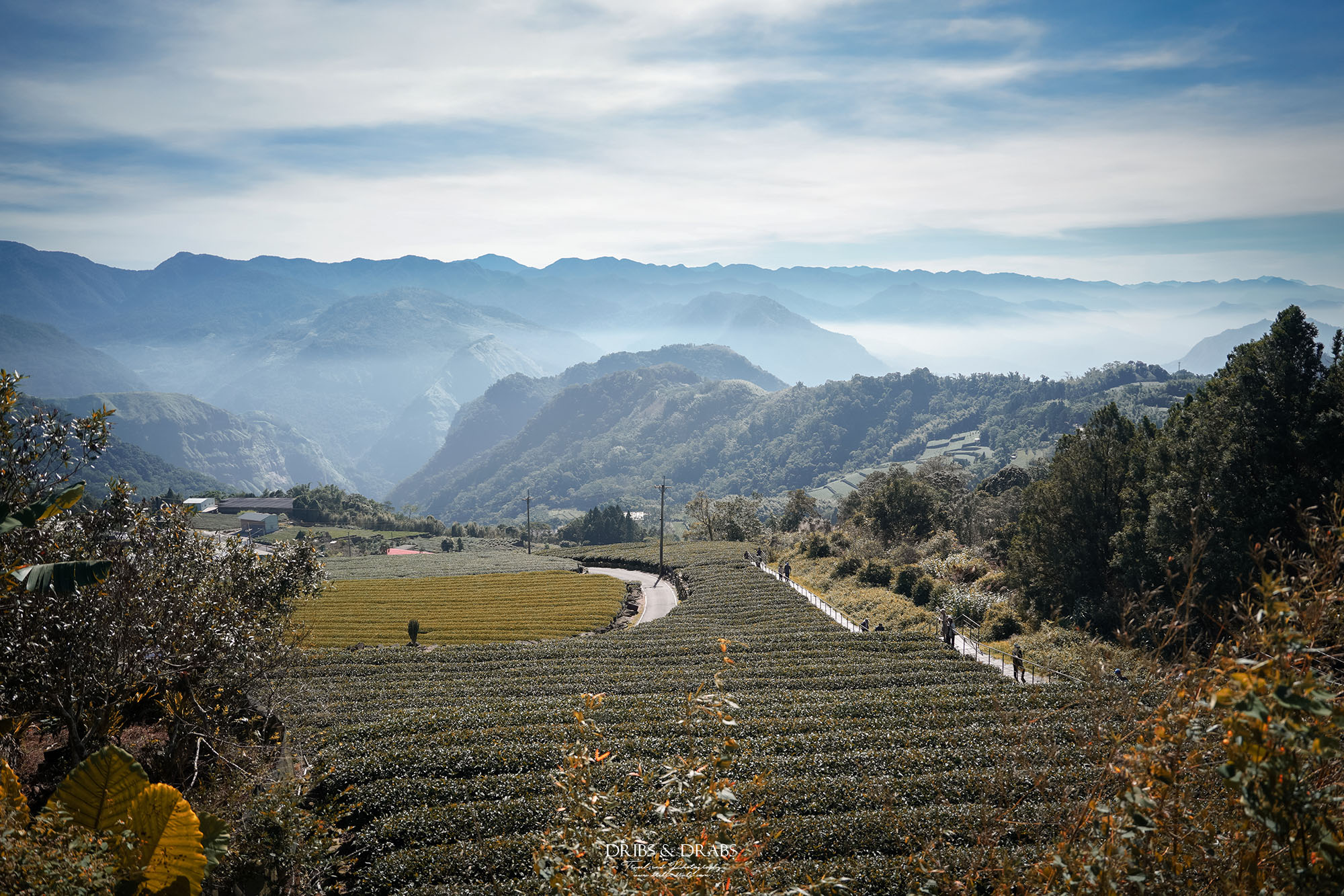 第一次造訪二延平步道是在午後,當時山中起了大霧,雲海與遠山都隱沒在白霧之中,只剩茶園靜靜鋪展眼前。那天在茶園裡拍下的一張照片,至今仍是我十分喜愛的作品,綠意層疊、霧氣氤氳,正是最具阿里山風情的畫面。