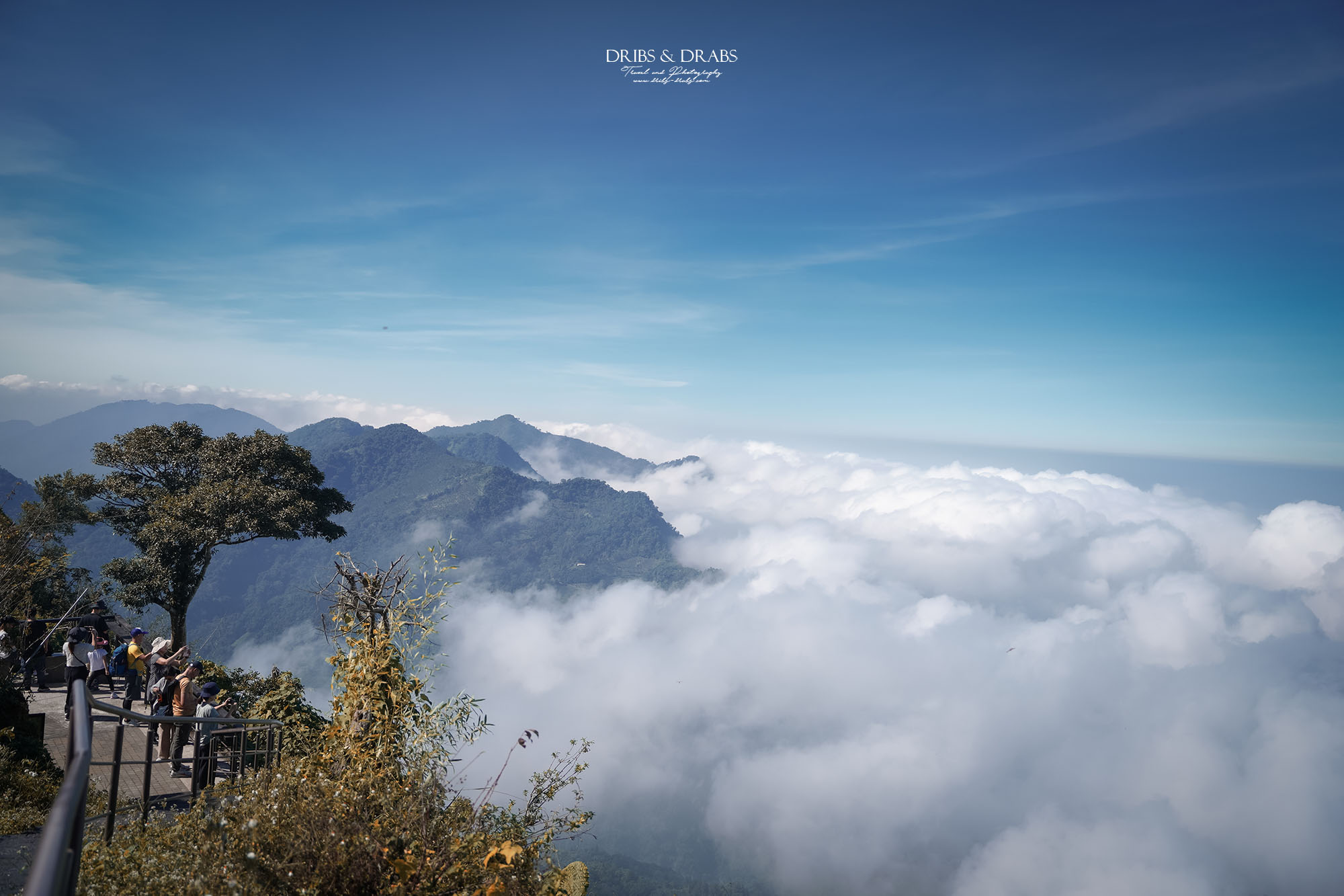 再往前走幾步,便抵達第一座觀景台。眼前的景色令人屏息,雲海鋪滿整片山谷,潔白翻湧,如同潮水湧動。遠處的山峰在雲霧間若隱若現,宛如漂浮於海中的小島。秋冬正是雲海最盛的季節,這時來訪,總有機會見到這壯闊的一幕;而二延平步道的雲海,更被許多人譽為全台最美之一。