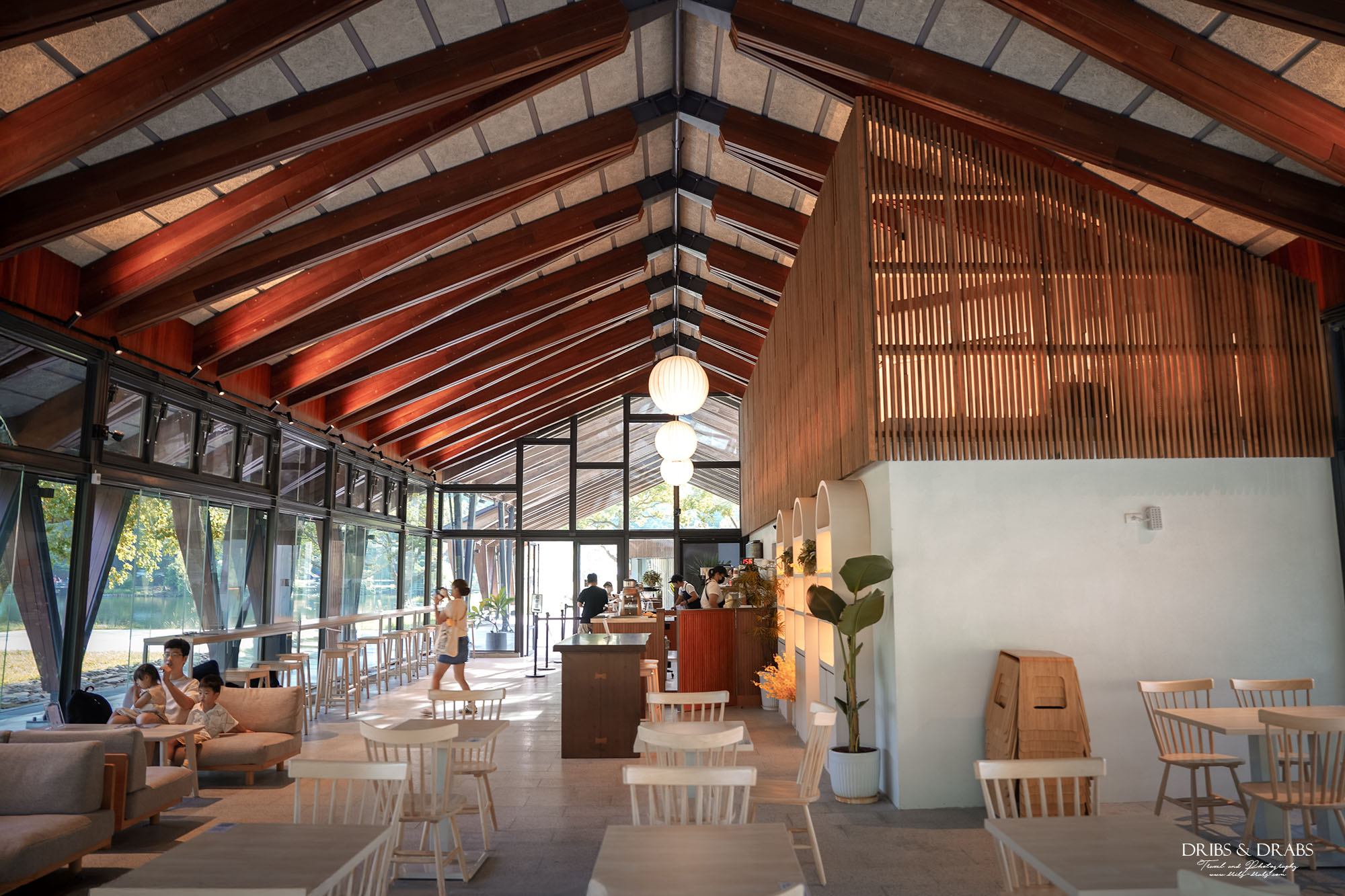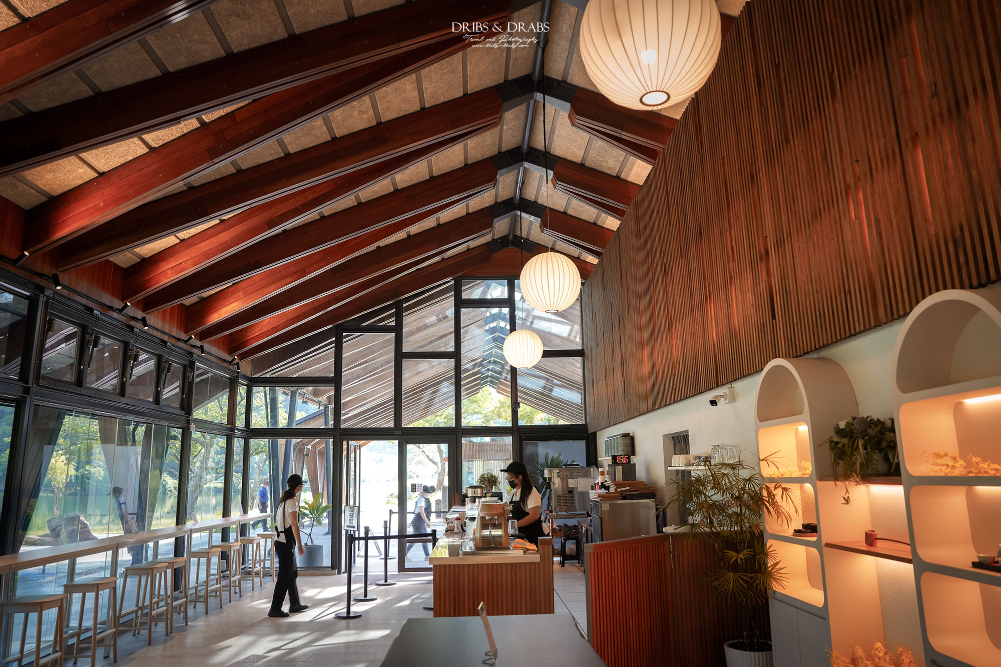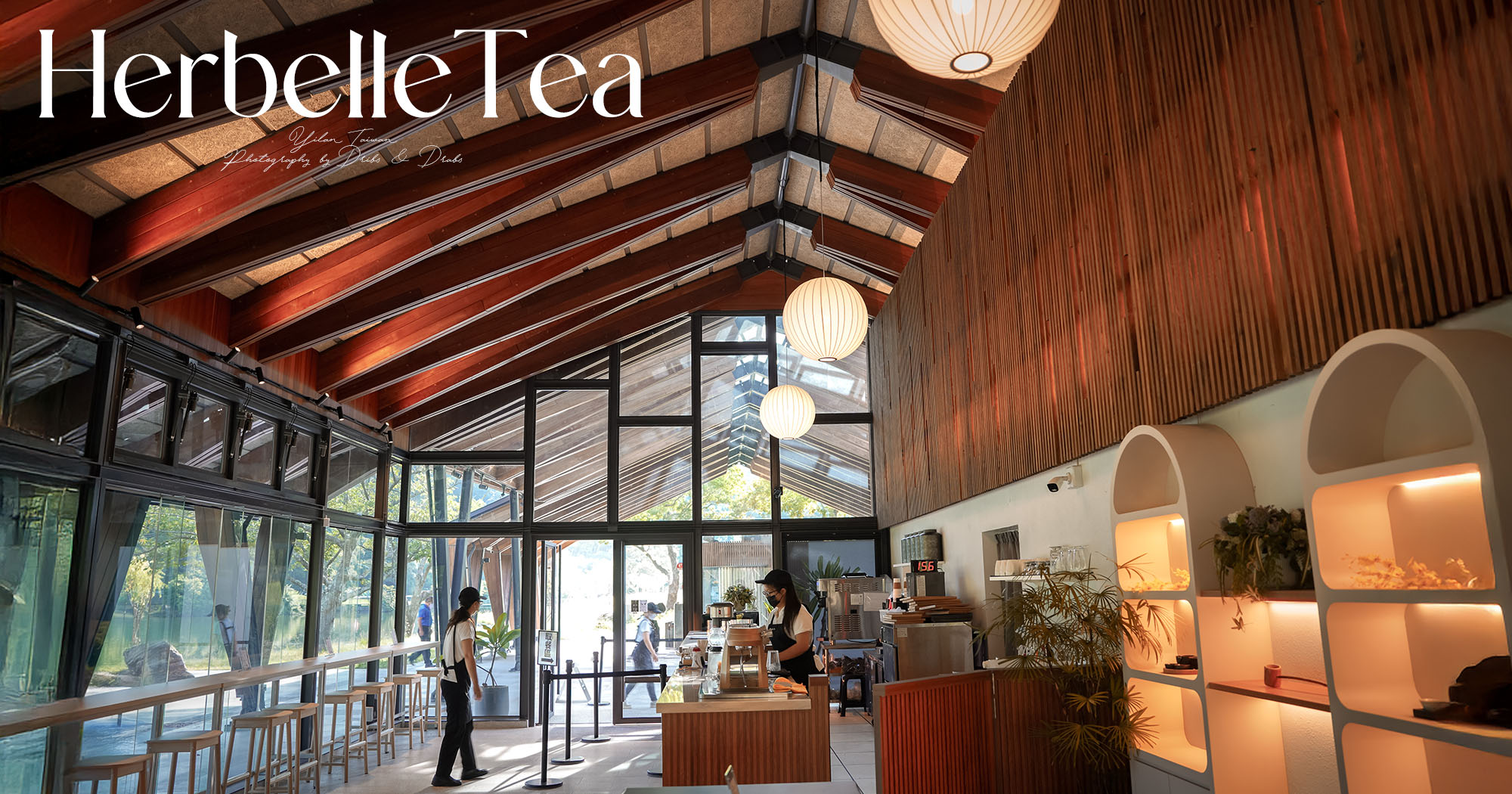 Herbelle Tea 湖畔茶屋緊鄰宜蘭龍潭湖畔,地理位置得天獨厚。整棟建築以溫潤木質為主結構,搭配大片落地玻璃,讓湖畔的綠意與波光自然映入室內,無論在哪個角落,都能欣賞到如畫的湖景。茶屋從早上八點便開始營業,特別推薦在清晨時分造訪,先沿著湖畔步道散步一圈,欣賞晨霧中水面如鏡的夢幻倒影,隨後再至茶屋歇腳品茗,在清新的空氣與柔光之中,開啟美好的一天。