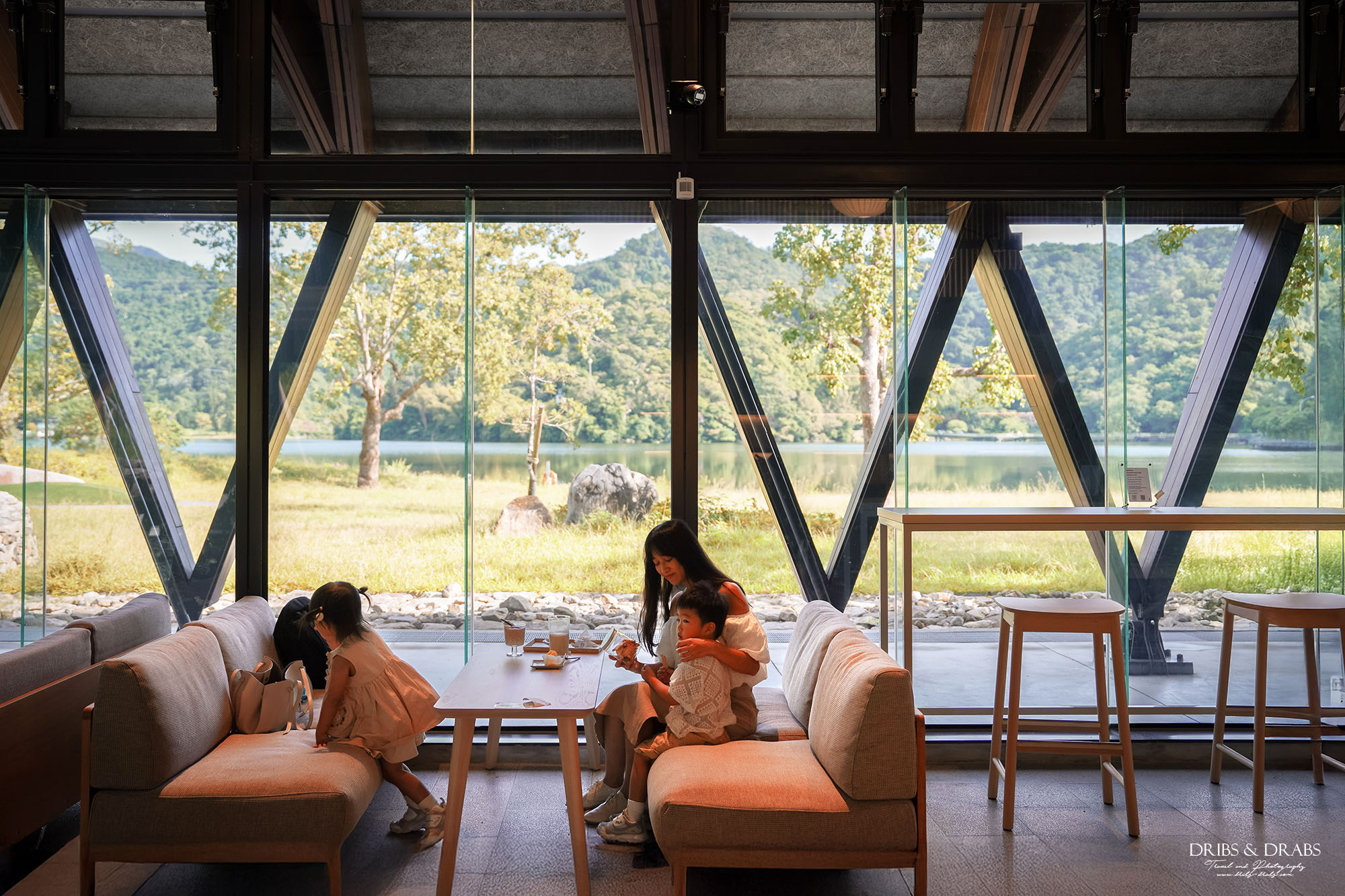 我們在尚未八點時便抵達湖畔,沒想到茶屋門口已聚集了幾組等候的遊客,可見其人氣之高。幸運的是,我們正好搶到最後一組沙發座位,這可是店內最愜意、最受歡迎的位置,僅限三人以上才能入座。柔軟的靠墊與寬敞的空間,讓人一坐下便不想起身了。店內似乎未設置嬰兒座椅,若是攜帶幼兒同行,建議選擇沙發區或自備推車,會更加方便舒適。
