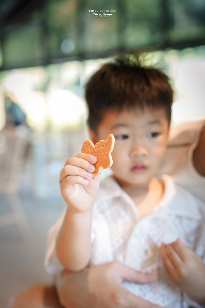 光一拿到恐龍餅乾,眼睛都亮了起來,小心翼翼地捧在手心裡,捨不得吃;沒想到貪吃的知在吃完自己的後,竟飛快地偷咬了光的餅乾,讓光當場崩潰大哭。為了安撫光,我只好再去買一盒餅乾,沒想到這盒又被知不小心摔在地上,恐龍都碎了,光再次淚崩。那一刻雖然手忙腳亂,卻也成了我們在咖啡廳裡最真實又難忘的小插曲。
