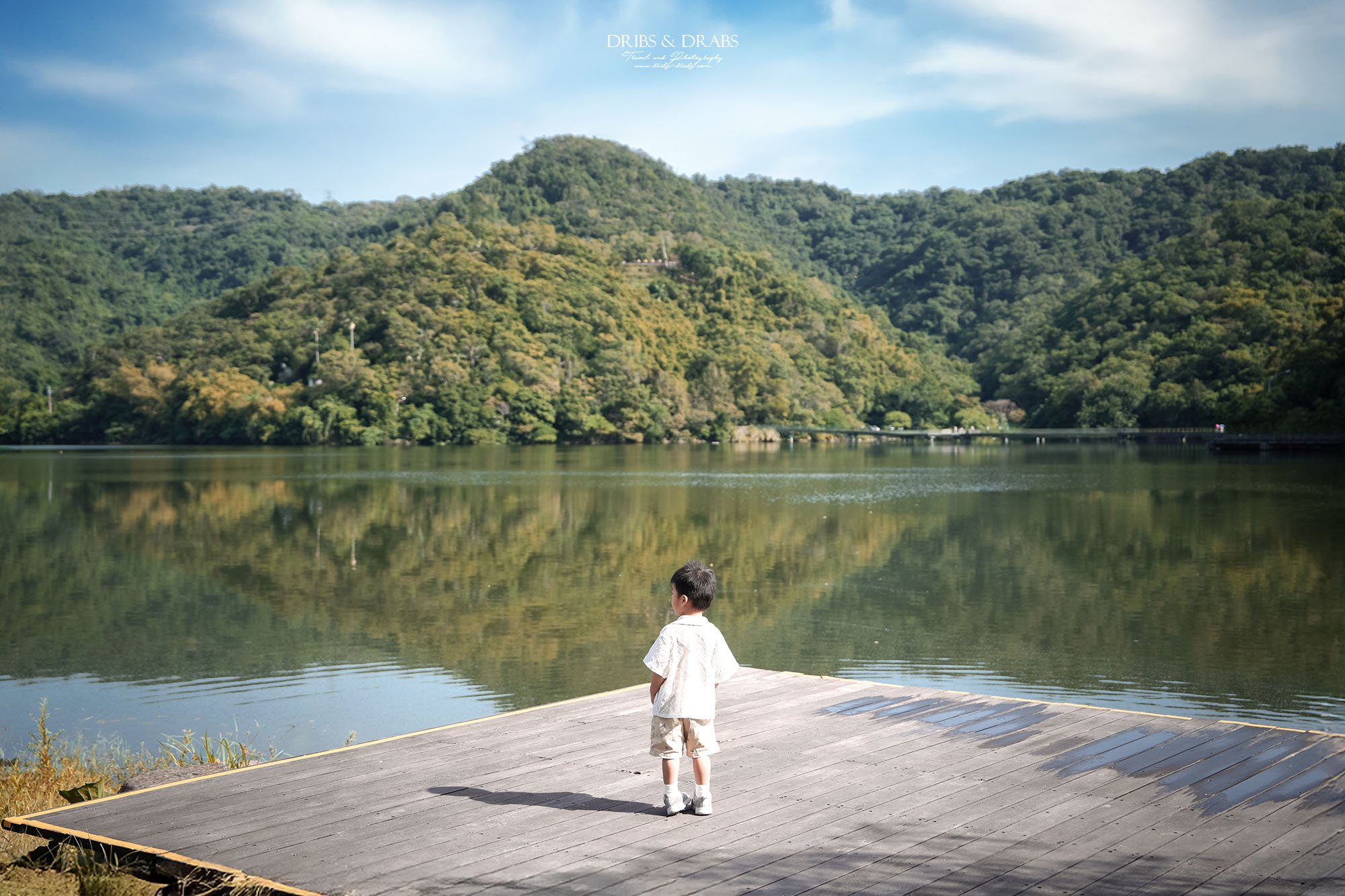 離開咖啡廳後,我們沿著湖畔散步,龍潭湖設有完善的木棧步道,環湖一圈約半小時,平緩好走,是相當適合全家同遊的路線。早晨的龍潭風景極美,照片拍攝時已近十點,但七點抵達時更顯靜謐迷人,只是當時急著進咖啡廳,沒能留下那份夢幻的晨光。湖畔的生態也十分豐富,蜻蜓在空中飛舞、魚群與鴨子悠游水面,生機盎然。沿途還能見到不少在地人晨跑或散步,空氣清新、景色宜人,讓人不自覺放慢腳步,細細享受這份悠閒。