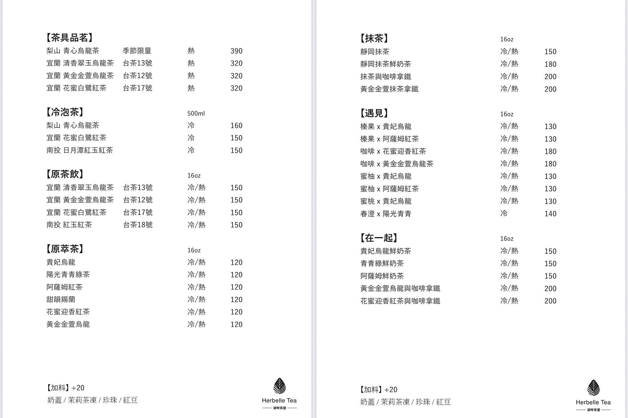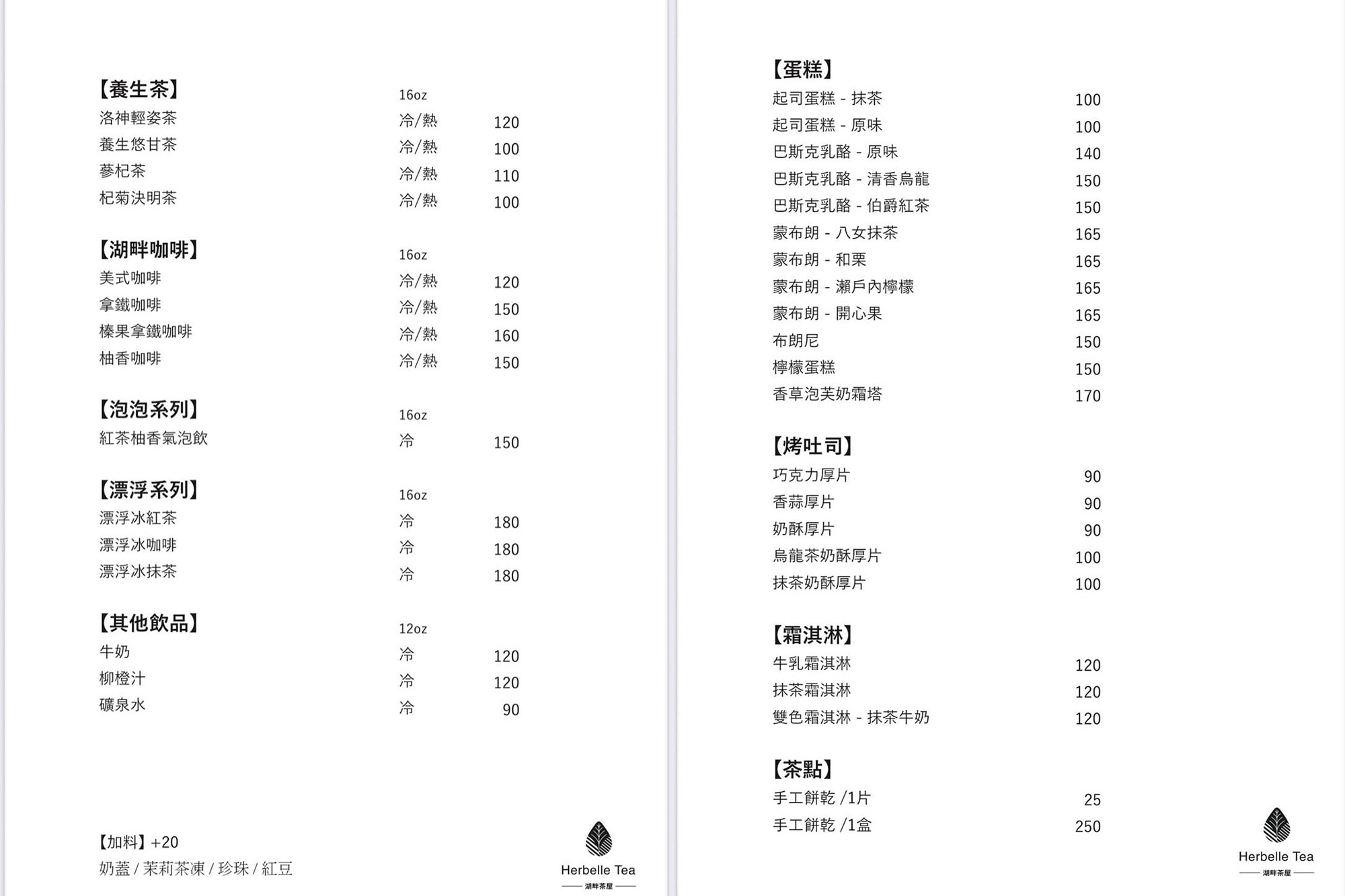 Herbelle Tea 湖畔茶屋提供飲品與蛋糕,低消為一人一份餐點(不限飲品),覺得是滿親民的政策,難怪一開幕便有絡繹不絕的訪客前來。以下菜單提供給大家參考: