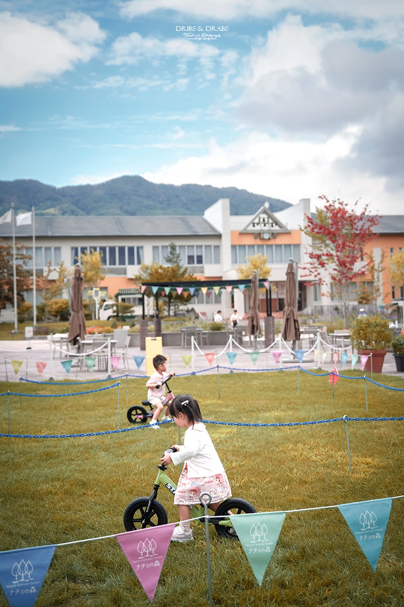 對「ナチュの森」的第一眼印象,便是那片色彩斑斕的花海。園區裡種滿各式花卉,繽紛色彩與可愛建築,搭配北海道宏偉的群山背景,構築了一幅美麗的畫面。造訪當日遇上戶外教學的幼稚園小朋友,他們在園區裡奔跑、嬉戲,笑聲此起彼落,為這片樂園增添了活力與歡樂。