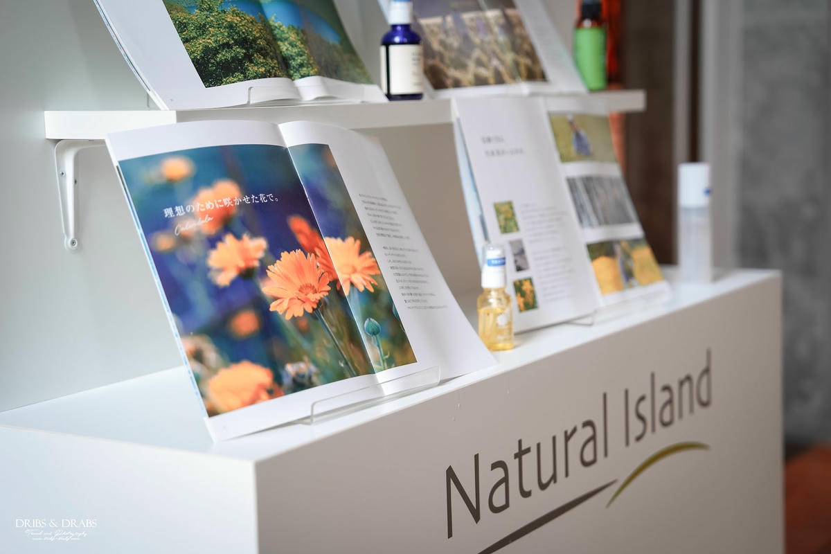 其實「ナチュの森」是日本知名保養品牌 Natural island & Natural science 所打造的觀光工廠,但完全不帶一絲的商業氣息。一路參觀下來,直到走進這個空間才看見低調的品牌介紹,其餘角落幾乎沒有任何宣傳痕跡,根本走佛系經營路線。整座偌大的園區遊客皆可自由穿梭,沒有推銷、也不見服務人員打擾,氛圍更近似於美術館或博物館,格外自在。