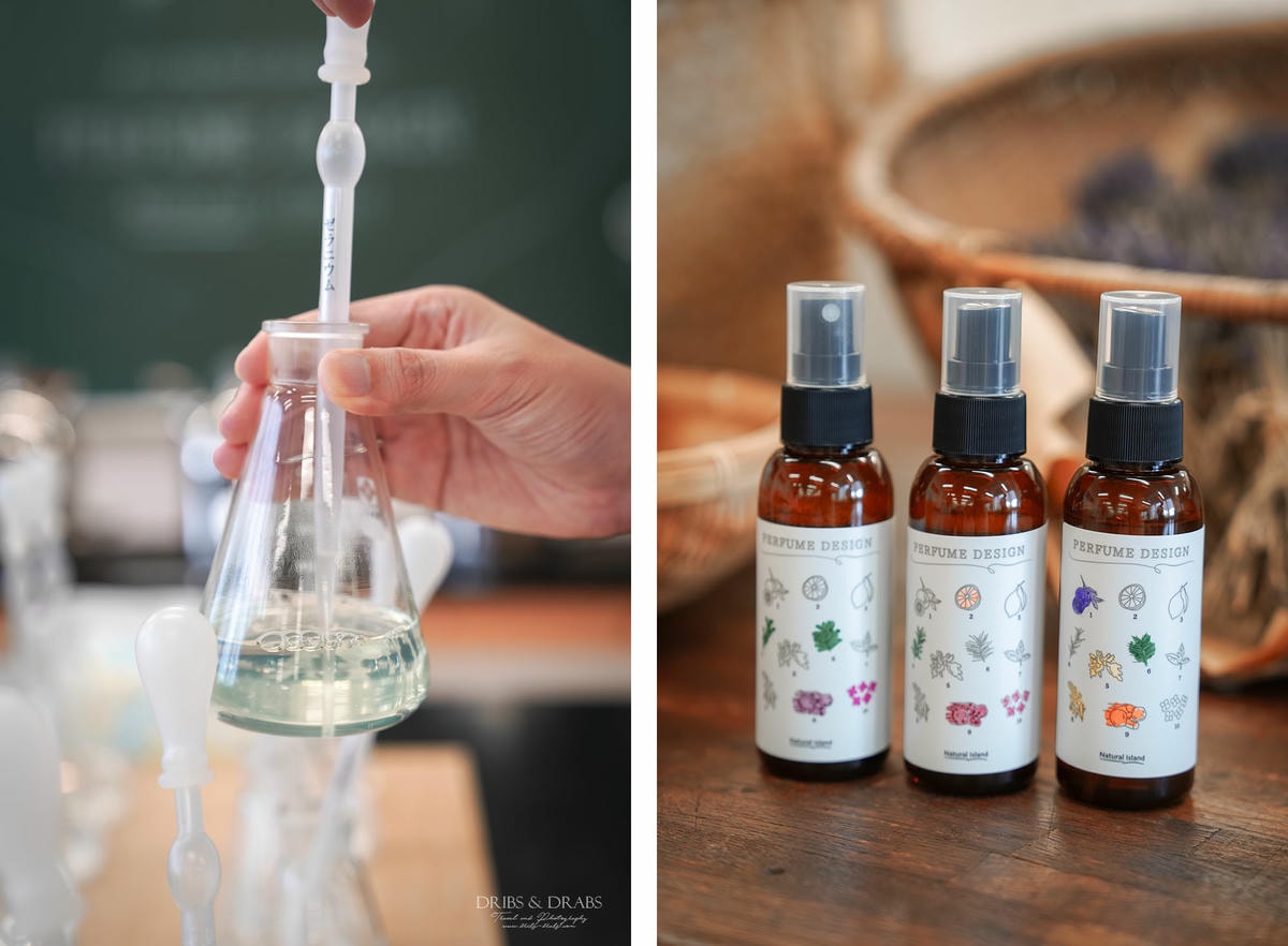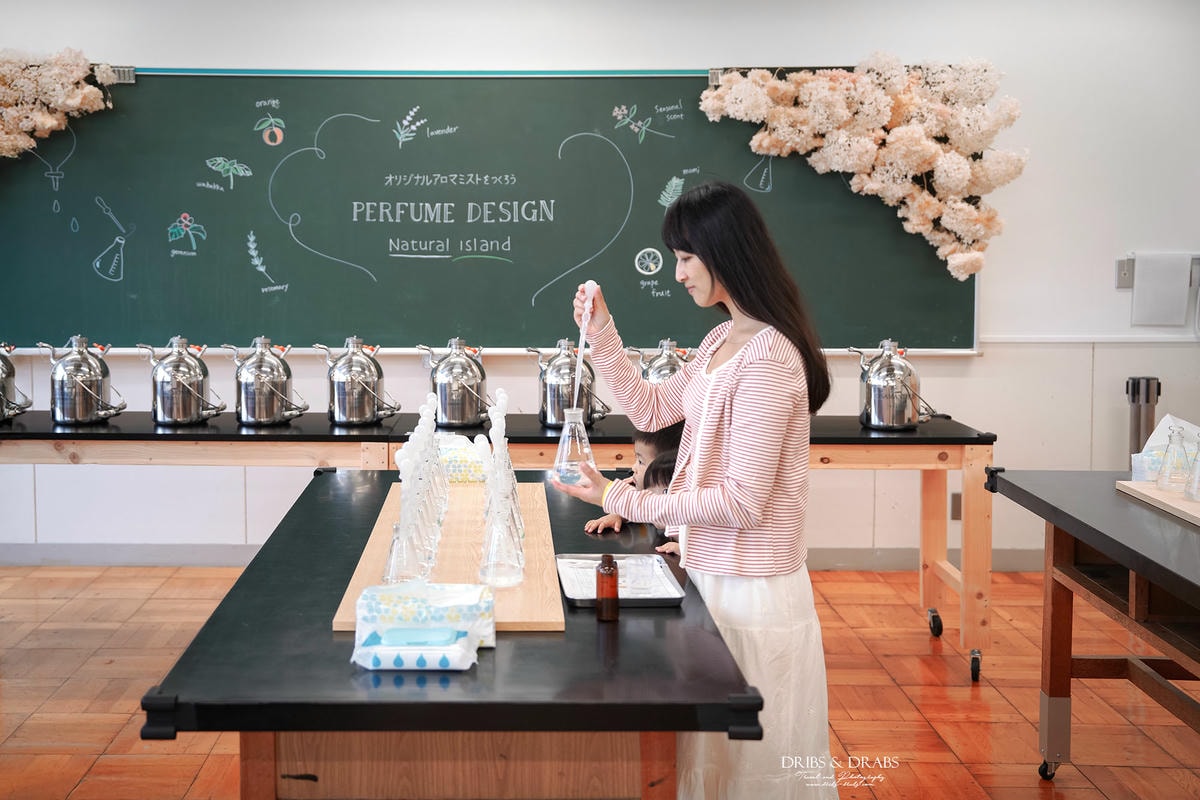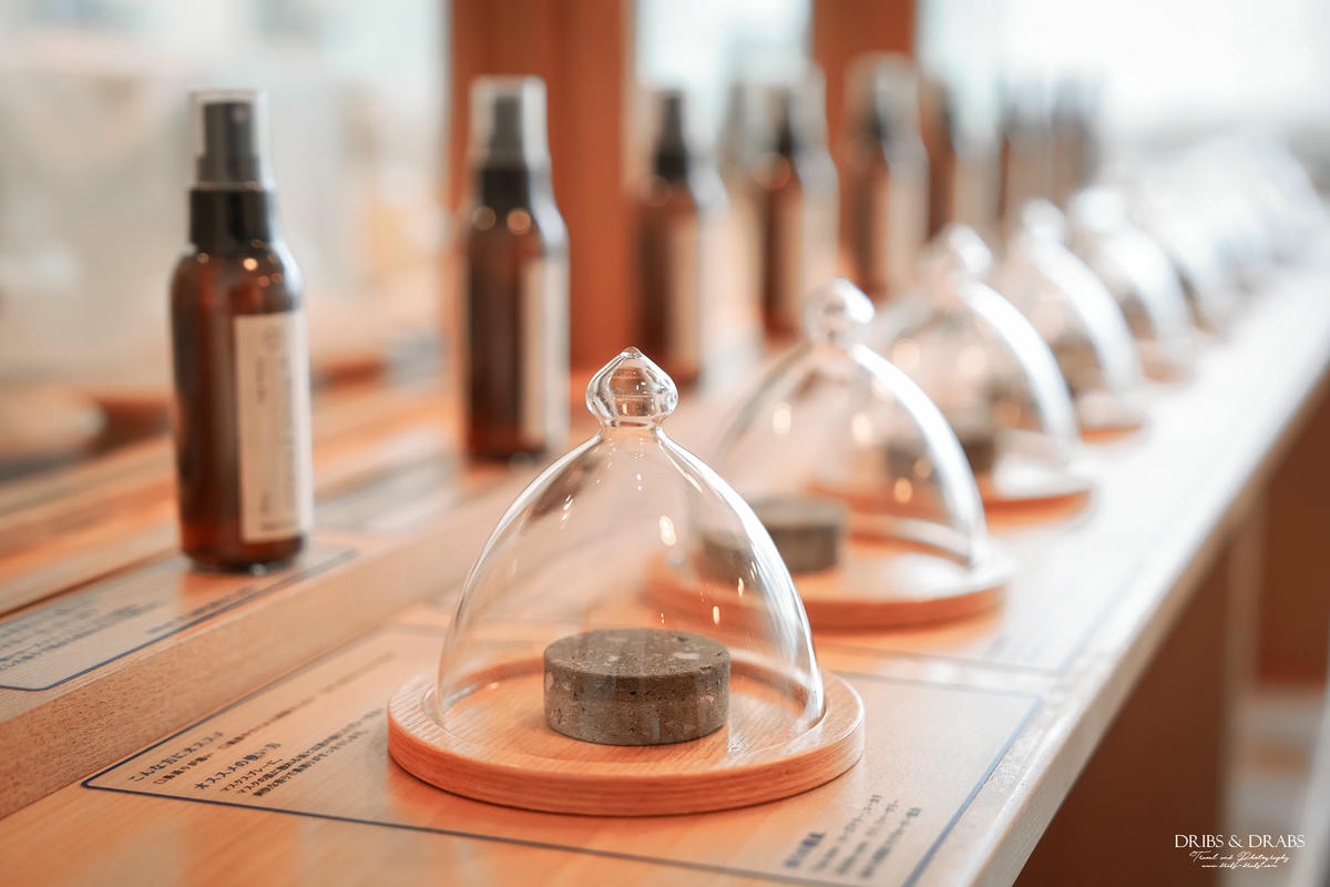 而另一間音樂教室則改造成工作室,我們在這裡製作一瓶屬於自己的室內香氛噴霧,作為北海道旅行最棒的紀念品!這個體驗非常特別,從十種天然香氣中挑選幾款喜歡的混合,怕失敗也可以參考範本直接複製或微調。值得一提的是,這裡製作的所有產品,水質來自俱多樂湖,是非常純淨柔軟的軟水,即使皮膚敏感的人也不會感到不適。
