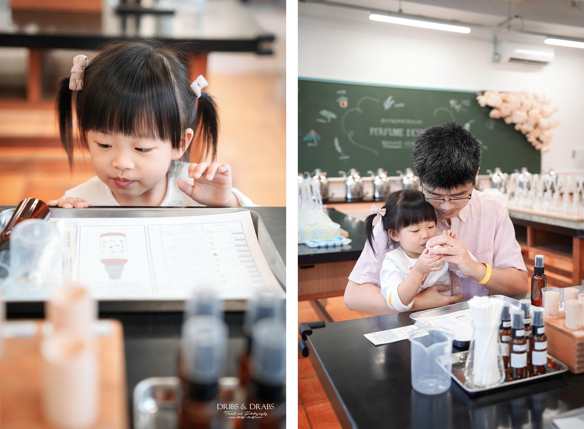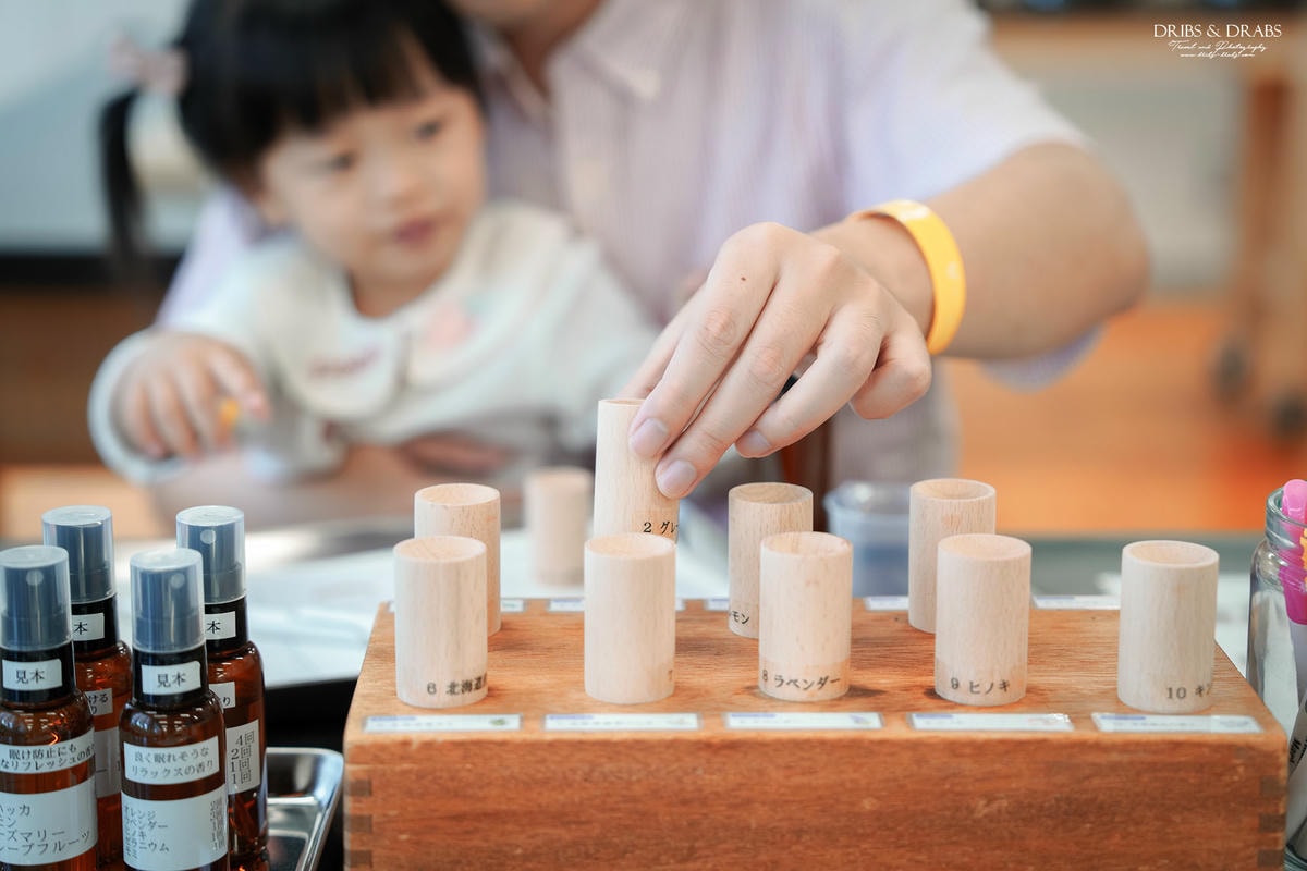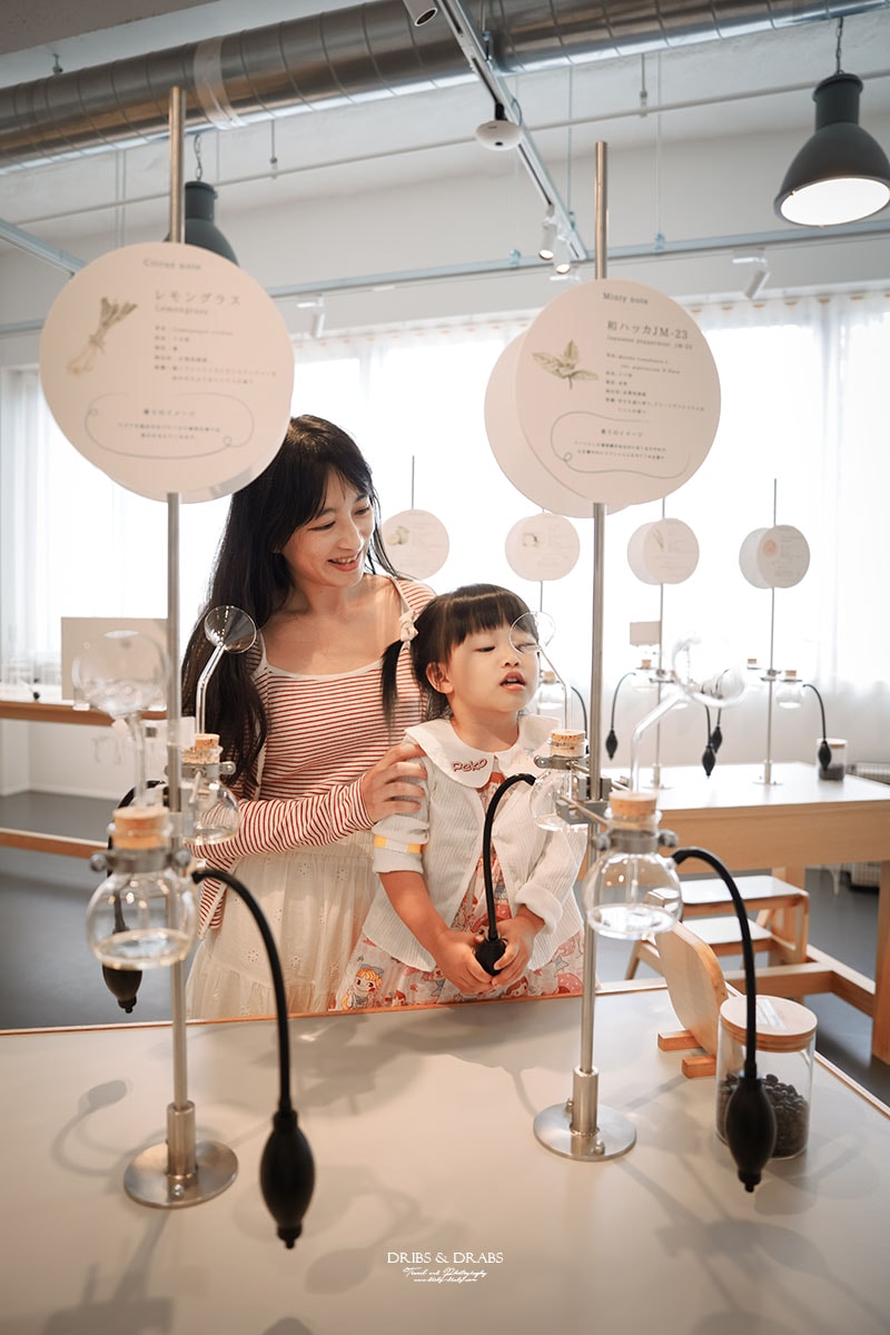 此體驗建議10歲以上可自行操作,10歲以下需大人陪同,我很推薦親子一同玩樂,過程簡單容易卻很有趣,光跟知也跟著我們完成了香氛噴霧呢!目前館方有推出平日限定套票,花園樂園+香氛噴霧+食堂100円折價券,僅需2000円(原價2350円),滿划算的!