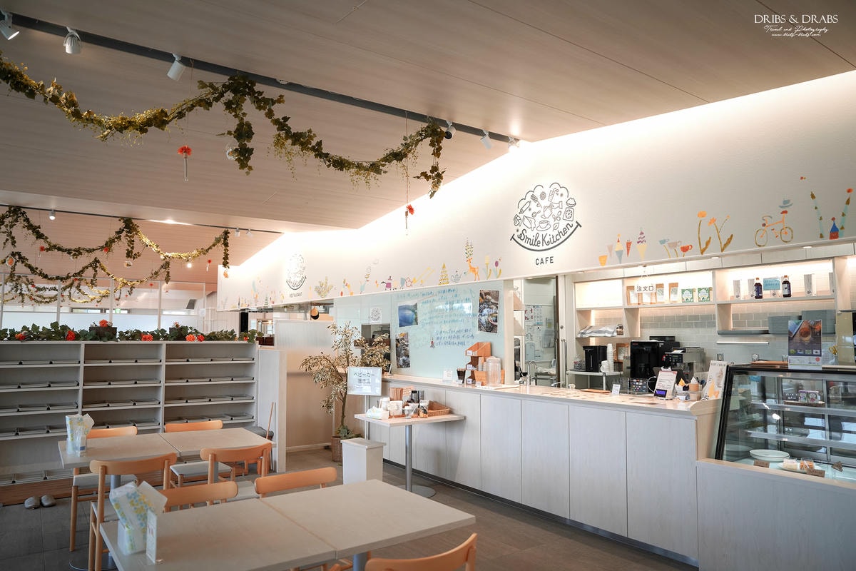 園區有兩處可以用餐的地方,蒸餾咖啡館和微笑食堂,因為帶著小孩,中午我們便在微笑食堂用餐。食堂在遊樂花園旁的白色建築一樓,空間明亮乾淨,還有有許多兒童座椅,供應的餐點為中華料理與披薩,選擇沒有很多,但味道還不錯。