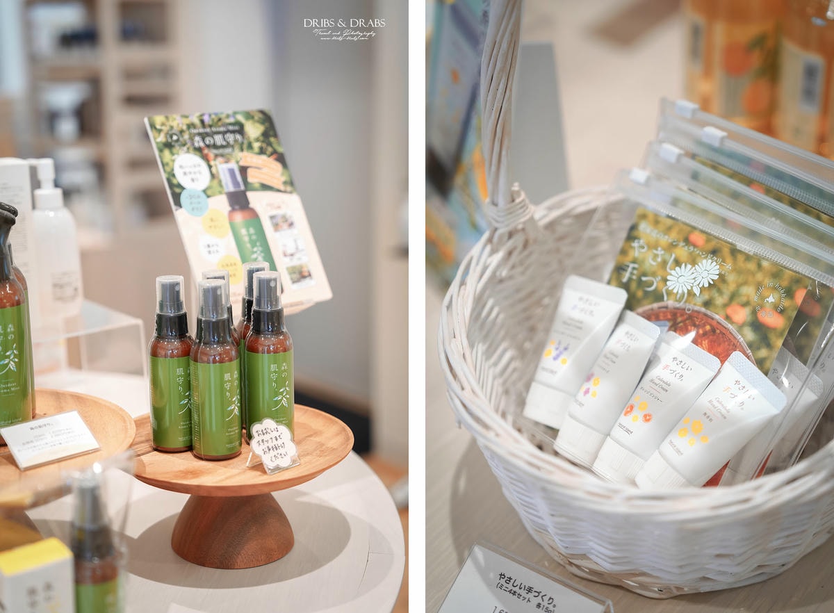 最後,我們來到了森の工舎逛逛,這裡除了蒸餾咖啡廳外,還販售著 Natural island & Natural science 的香氛噴霧和鄉村風格選物,喜歡日本小物的朋友,一定很難空手走出這裡!因為許多人在用餐,為了不打擾他們,這區便沒有拍攝照片,待大家親自來瞧瞧。