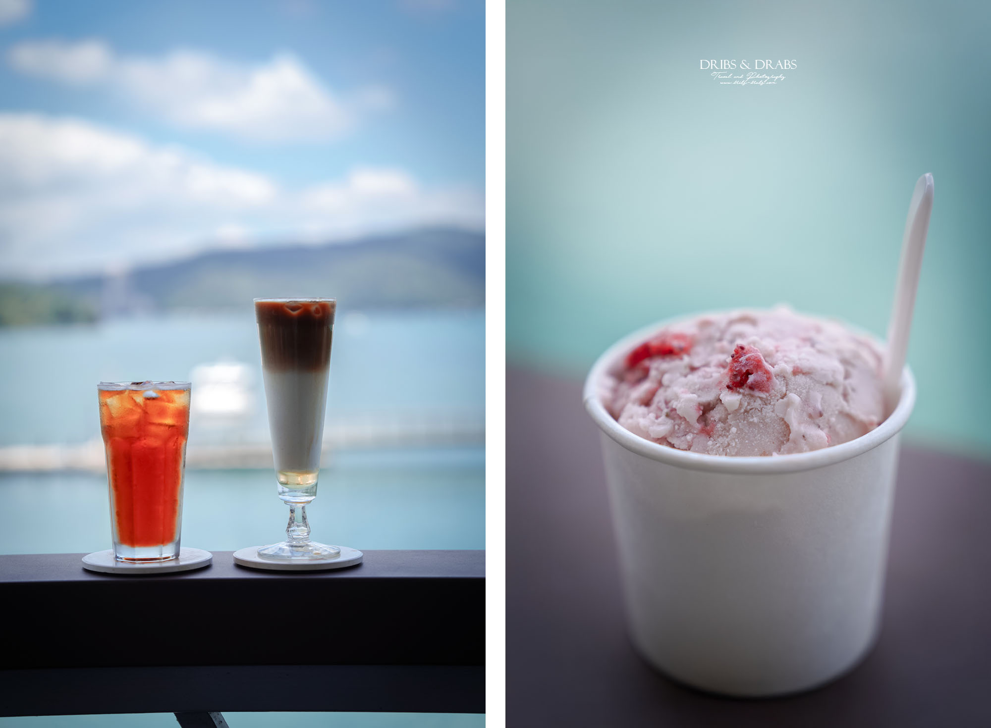 住宿專案贈力麗咖啡廳冰淇淋兌換卷一張!力麗咖啡廳在伊達邵遊客中心的二樓,很少人知道這裡有個湖景咖啡廳。兌換的冰淇淋有多種口味可以選,我們選草莓口味,還不錯唷!
