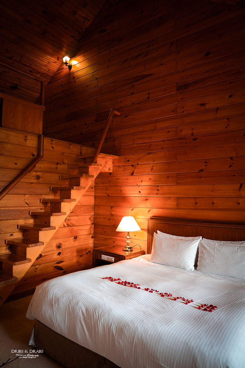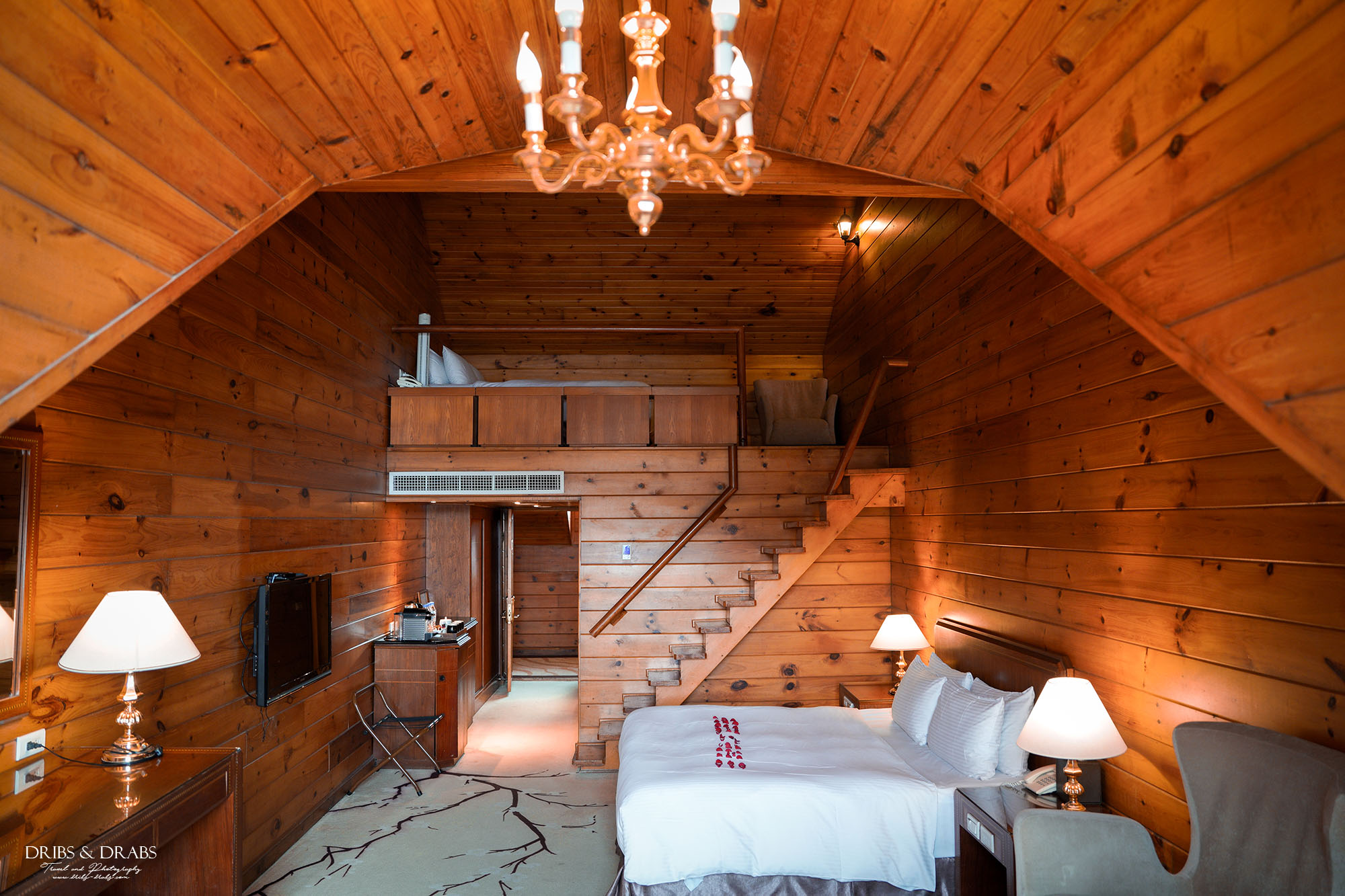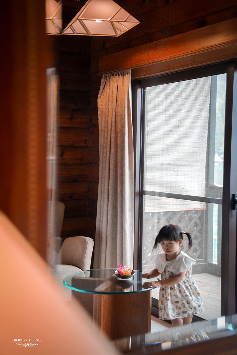 另一種四人房型「豪華湖景家庭房」是樓中樓格局,比較適合小孩大一點的家庭或是帶爸媽入住,床鋪分開睡覺時比較有隱私。這個房型的空間感較大,但只有窗戶沒有陽台。