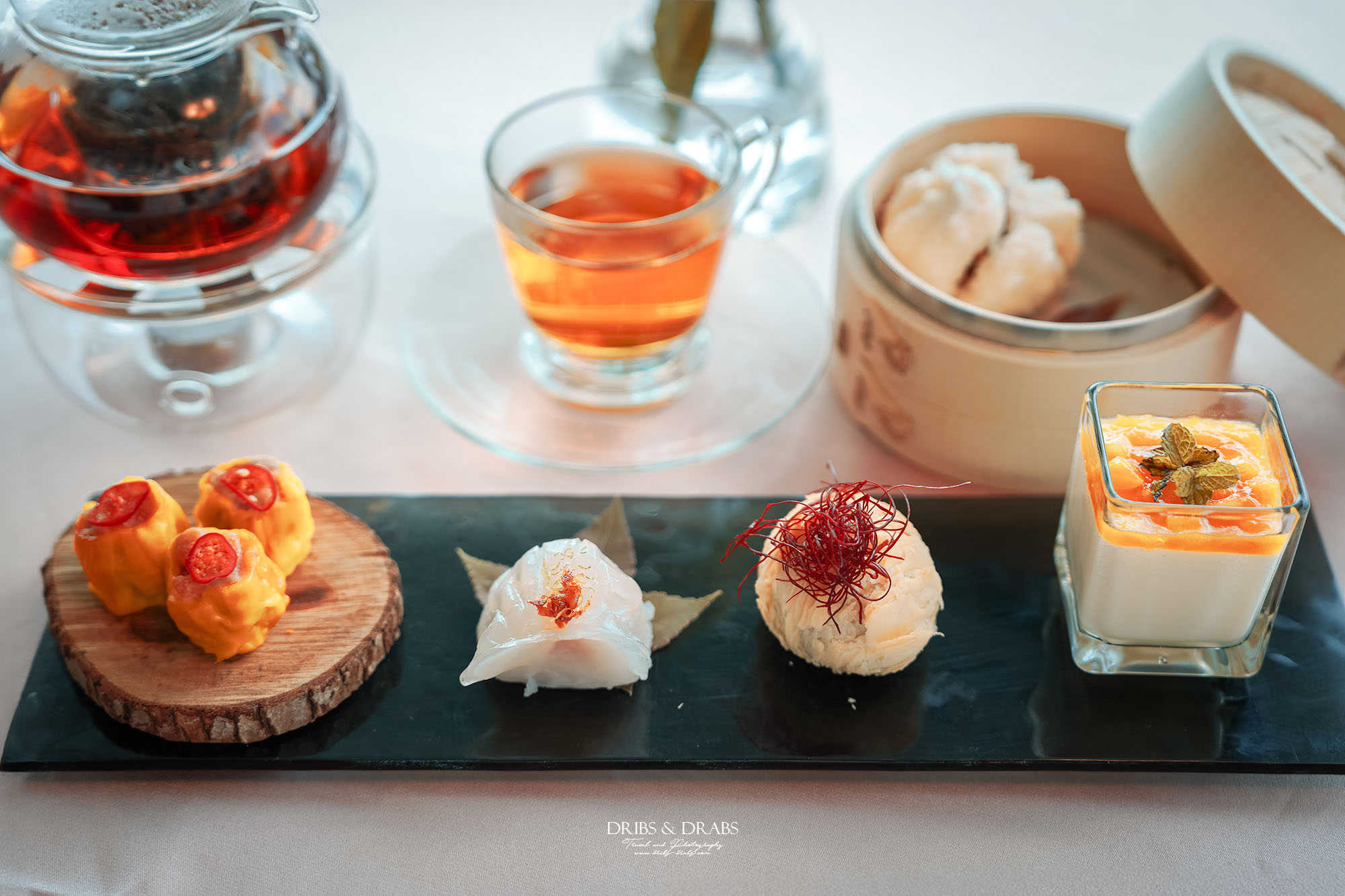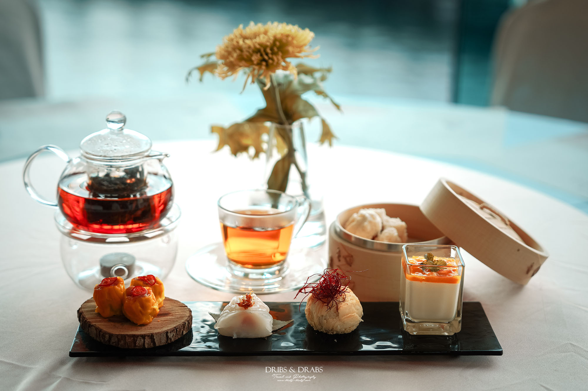 這次的住宿專案還贈送了一份港式雙人下午茶。茶點內容相當精緻,包括叉燒包等五種經典港點,每一道都兼具美味與質感。搭配香氣濃郁的日月潭紅茶,坐在窗邊望著整片湖景,覺得時光都慢了下來。
