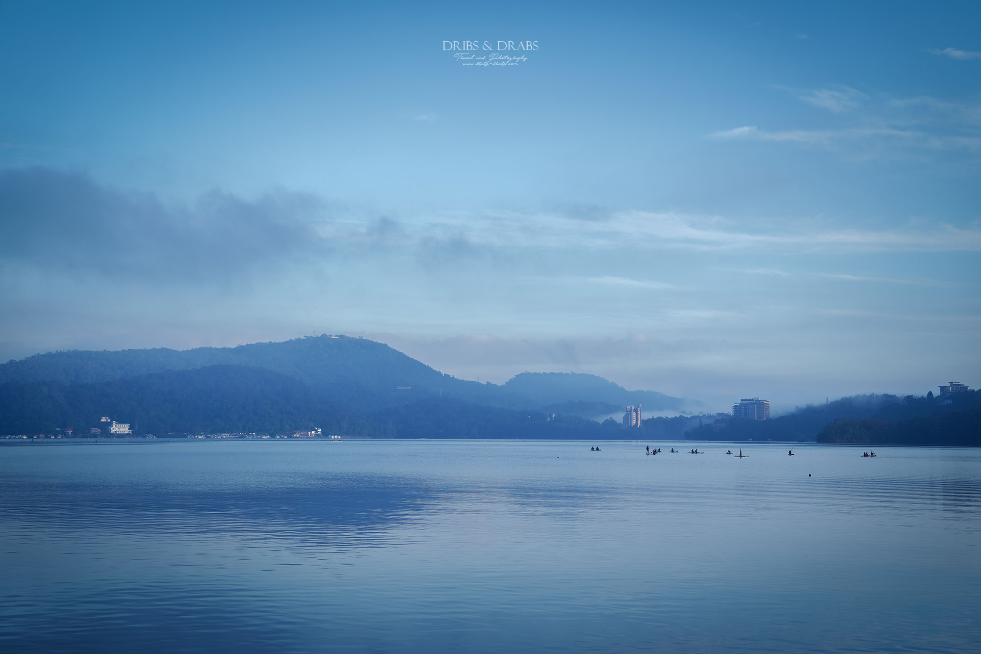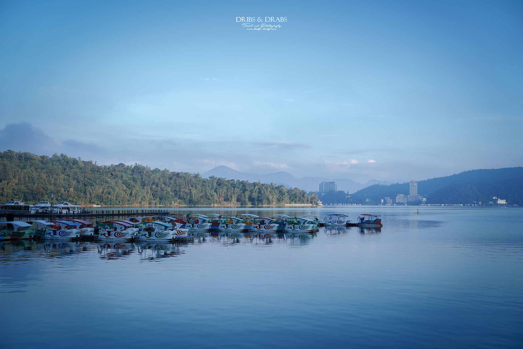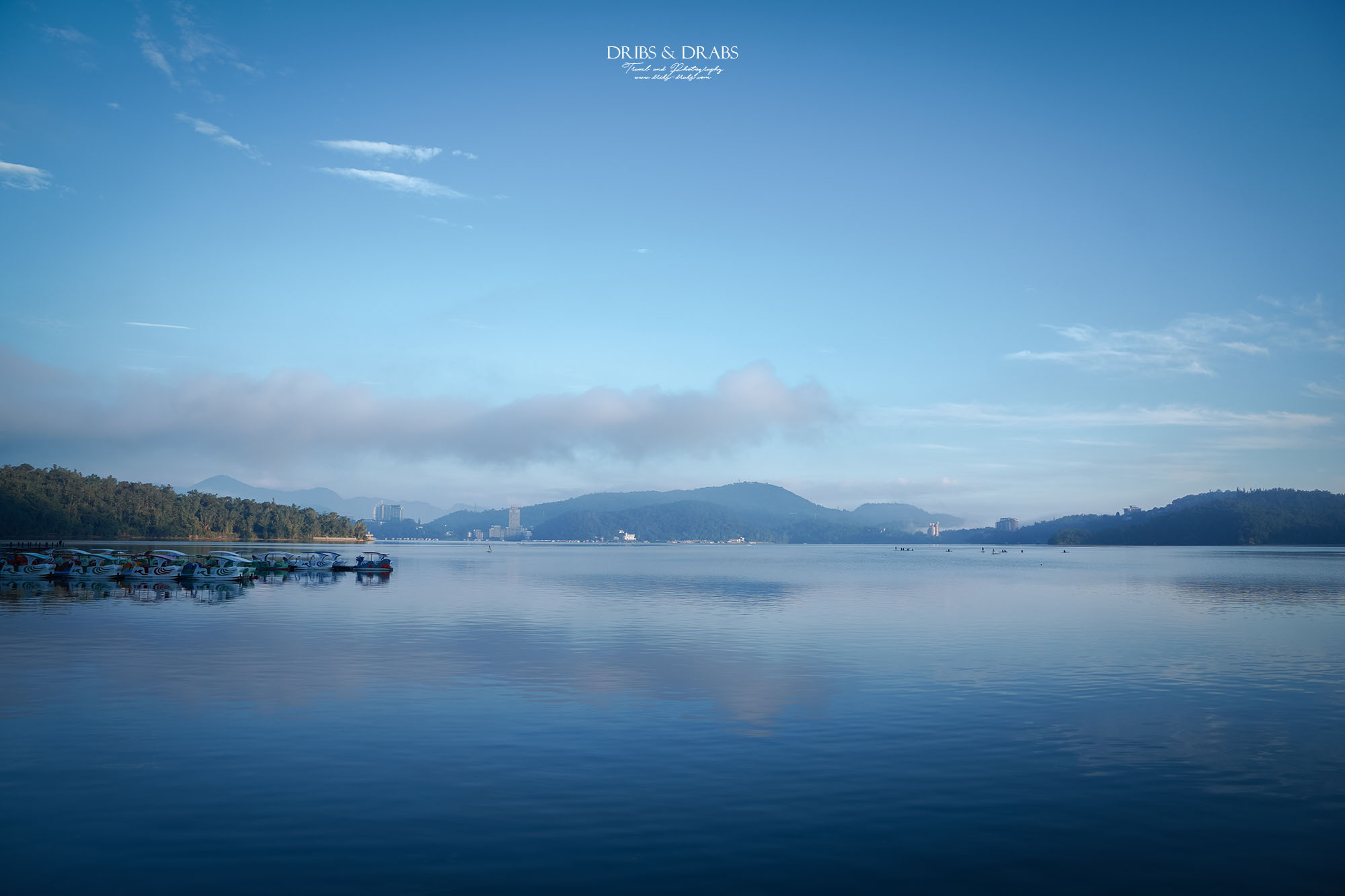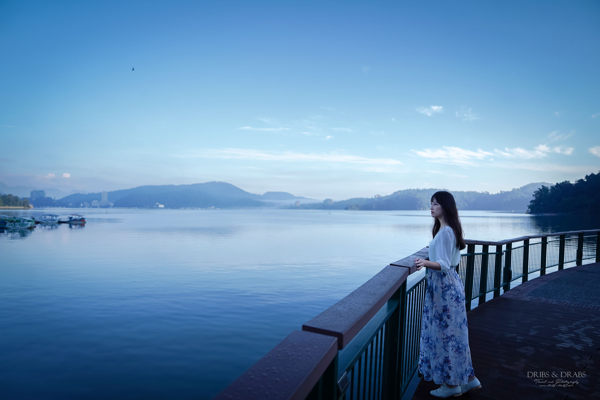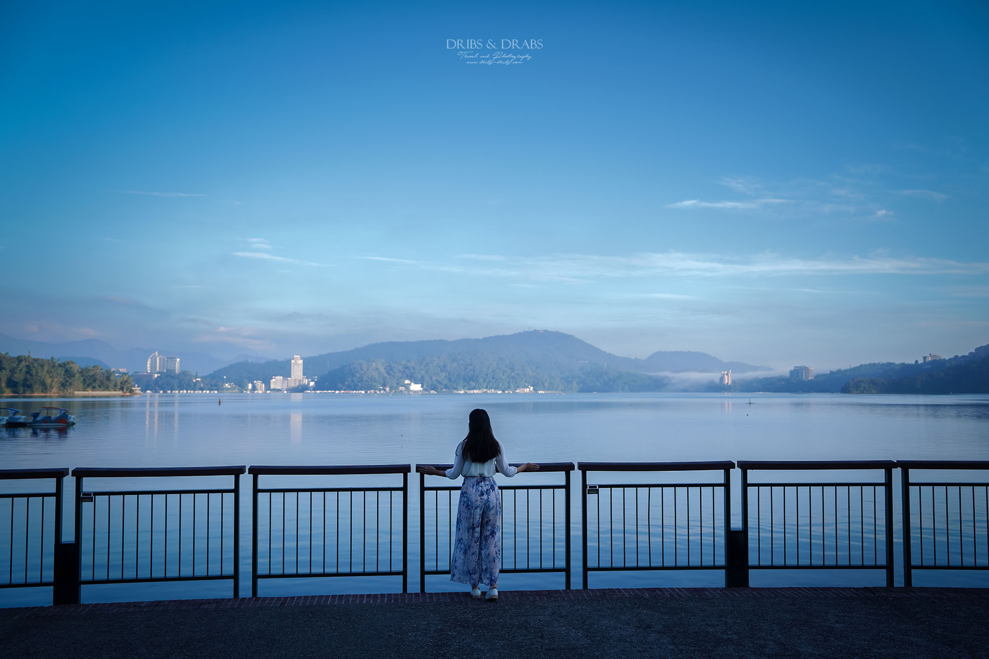 若天氣晴朗,千萬別錯過在清晨漫步於日月潭湖畔的美好時光。當太陽尚未越過山頭,湖面披上一層淡淡的藍霧,宛如仙境般靜謐。此時的景色最為動人,山巒間炊煙裊裊、微風輕拂水面,整個世界都被柔和的光影包裹。走在湖畔步道上,不時能遇見在地慢跑的居民,他們熟悉每個角度與故事。像我遇到的一位阿伯,就熱情地指著前方山頭對我說:「那就是躺著的觀音,你一定要拍!」