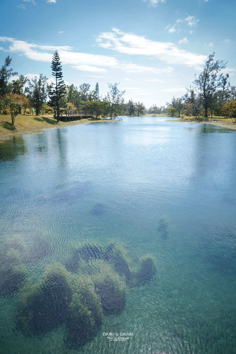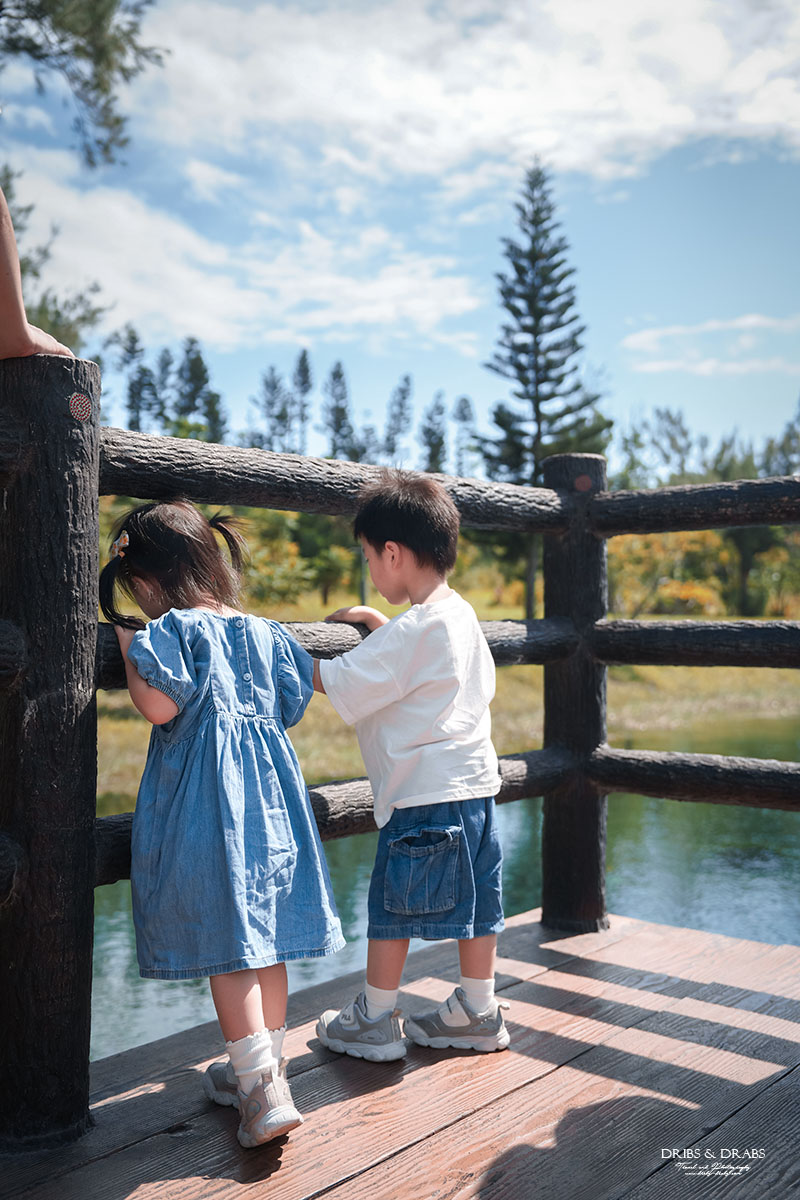 水相關的景點,埤塘、湖泊、海洋等,天氣絕對會左右美麗程度!台東森林公園尤其如此,琵琶湖的清澈湧泉在陽光照耀下會呈現出層層的翠綠與湛藍,湖面如玻璃般透亮;但若遇上陰天,色彩便會黯淡許多,少了那份令人驚嘆的通透明亮。幾年前還沒有孩子時,我也曾造訪過這裡。那天灰濛濛的天氣,雖然覺得湖水乾淨,但沒有特別驚艷。然而這次在晴空下再訪,才真正被琵琶湖的澄澈震撼到。因此真心建議:若想一睹琵琶湖最夢幻的一面,務必挑晴朗的日子前來!